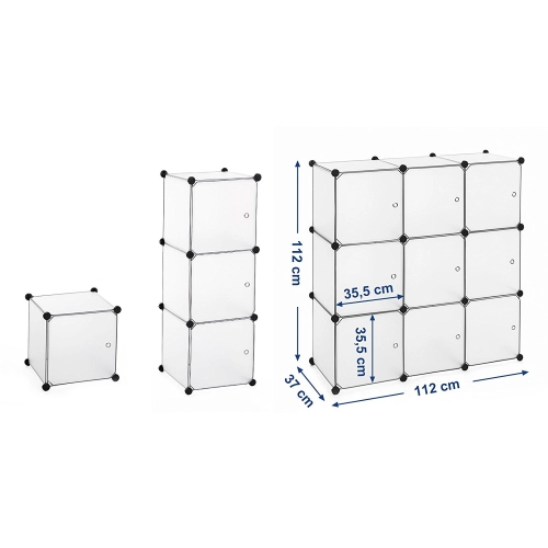 Mobiletto Guardaroba Scaffale Cubi Mobiletto Modulare Quadrato 9 Scomparti 112 x 37 x 112 cm (Bianco)